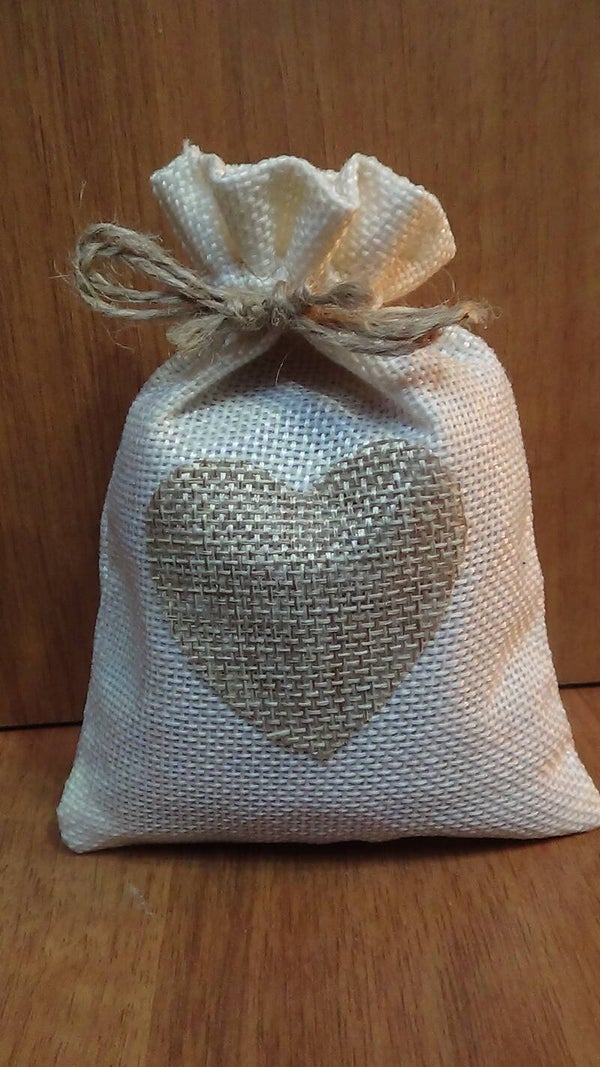 sacchetto in juta ecru cuore con circa 25 gr di lavanda